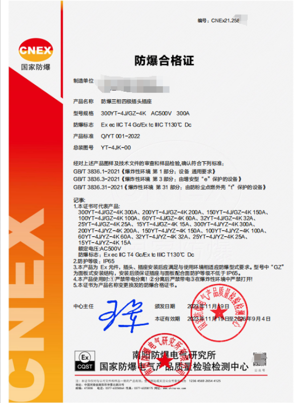 查看更多一、防爆合格证的介绍指用于确定设备符合标准的要求、型式试验和适应的例行试验的文件。证书可针对Ex设备或Ex元件。凡是符合防爆合格证范围内的产品都必须办理防爆合格证。二、防爆合格证的类型防爆合格证有隔爆型(d)、增安型(e)、本安型(i)、正压型(p)、n型(n)、充油型(o)、充砂型(q)和浇封型(m)等防爆合格证。三、办理防爆合格证具体流程:1.申请商与天海检测签订认证合作合同2.支付技术费用3