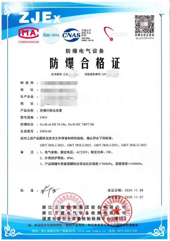 方圆:防爆灭蚊虫装置